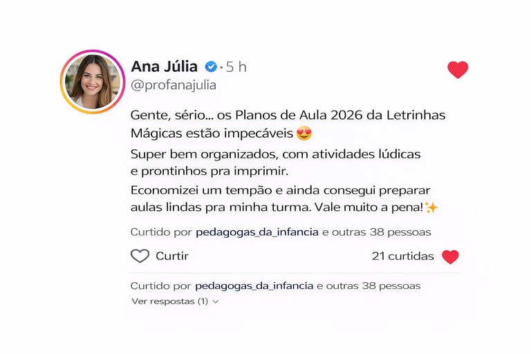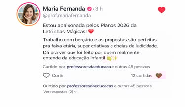Sou pedagoga e minha missão é economizar o seu tempo e facilitar o planejamento, oferecendo planos de aula completos, organizados e prontos para aplicar, alinhados à BNCC e pensados para cada fase da Educação Infantil.