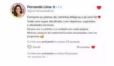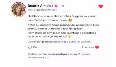 Com meus planos, você ensina com mais segurança, proporciona experiências incríveis para as crianças e conquista o que toda professora merece: mais tempo, tranquilidade e uma sala de aula funcionando desde o primeiro dia letivo.